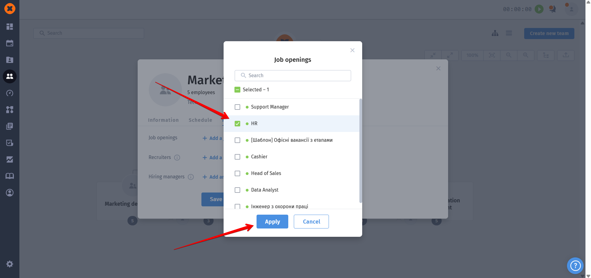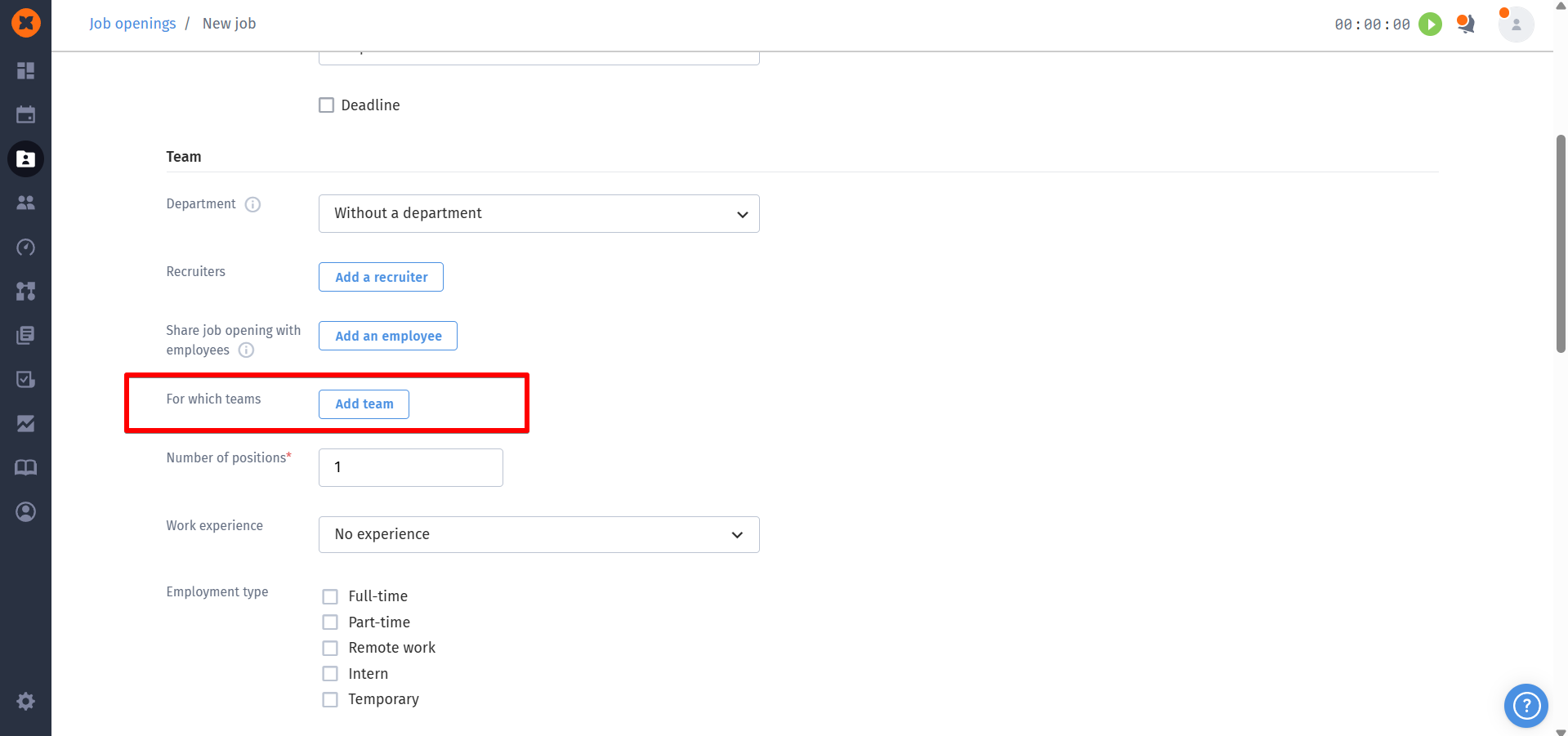 You can also assign a job opening to a team during the creation or editing of the job profile.