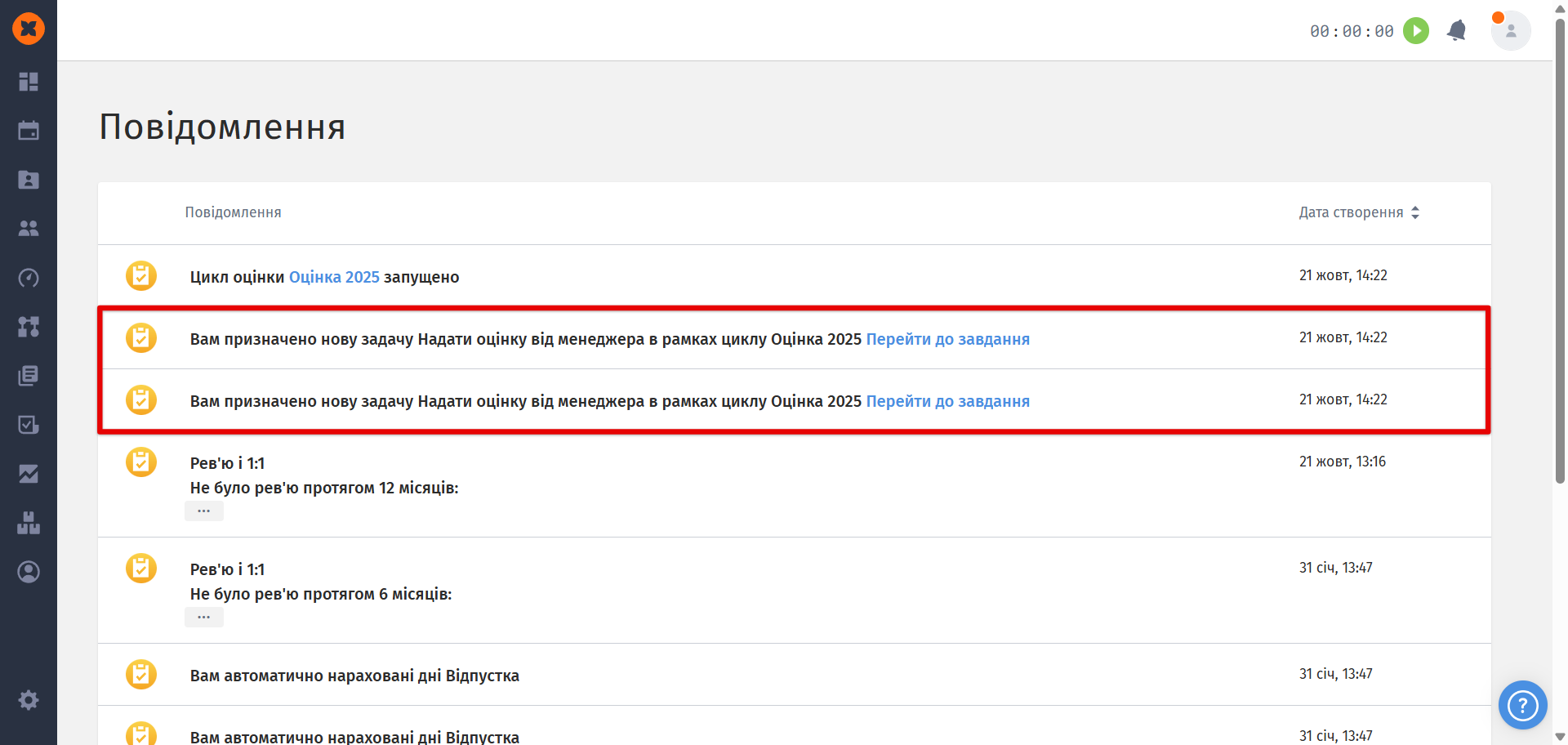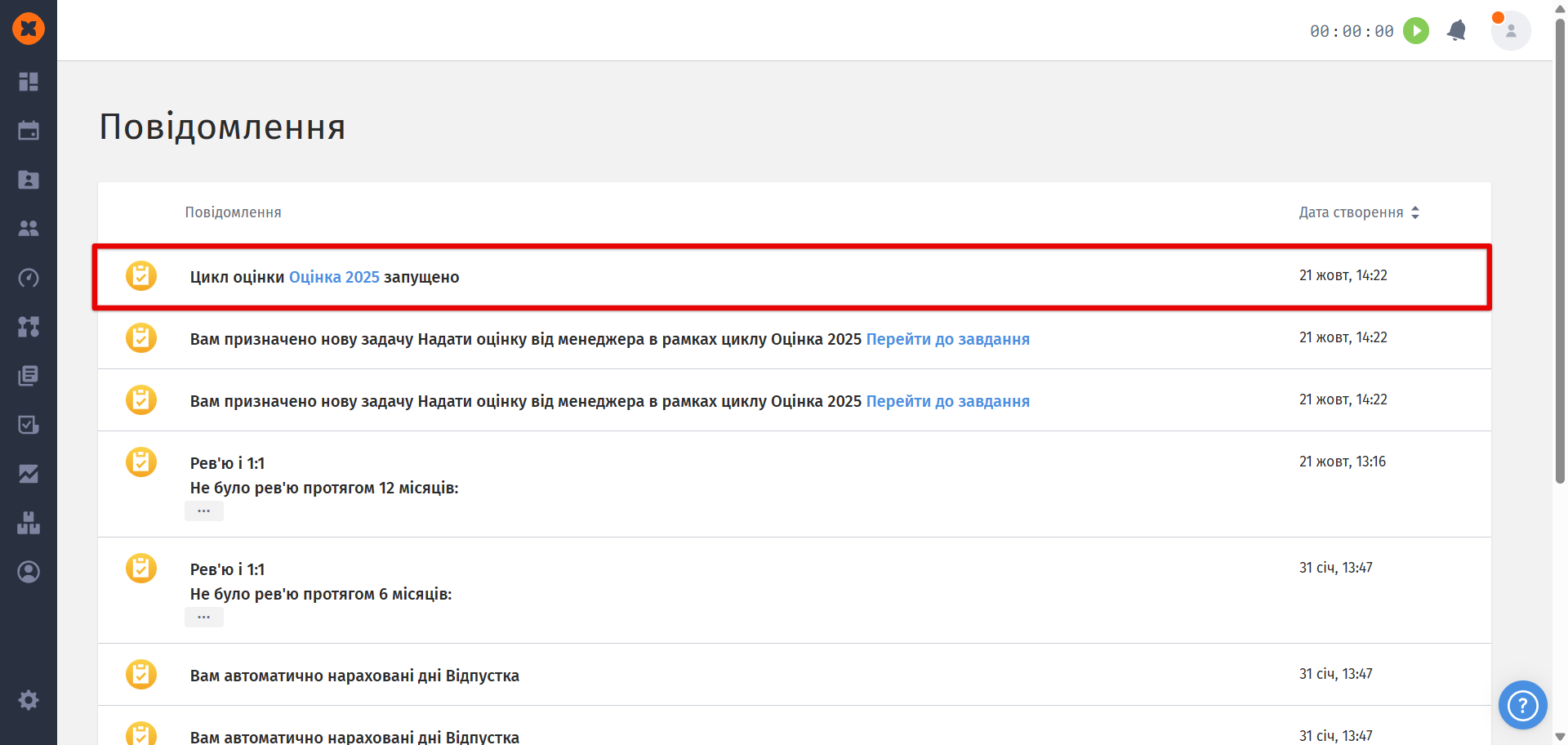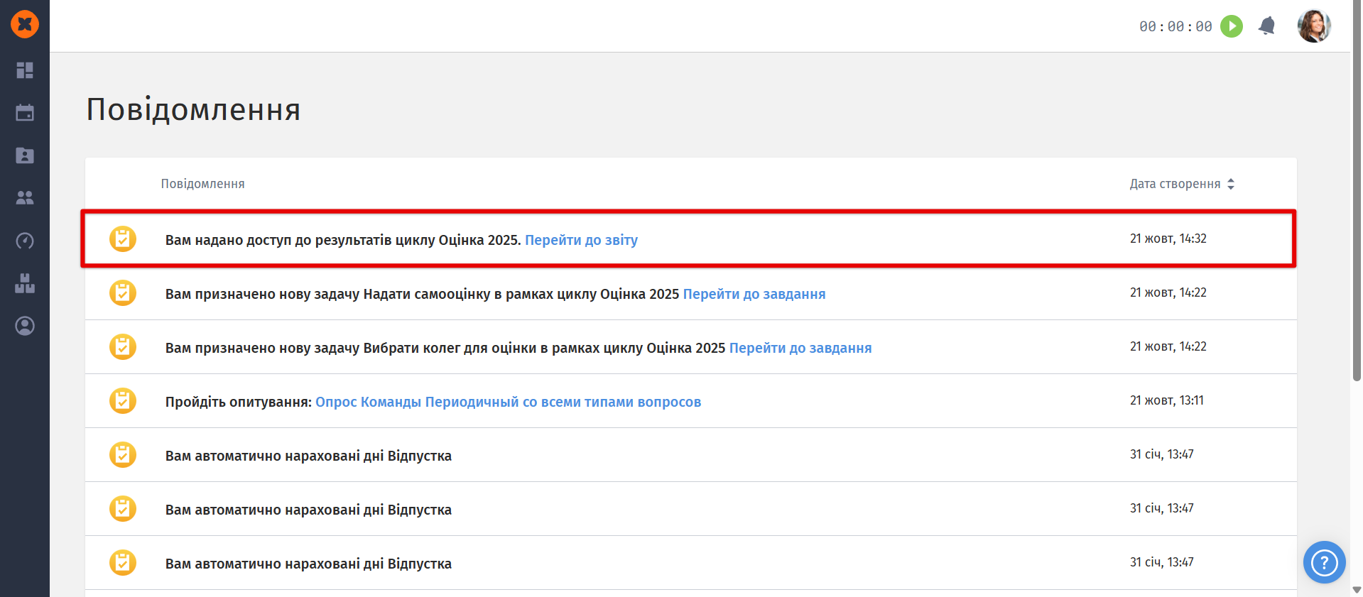 Додаткове сповіщення учасники отримують після завершення циклу, за умови надання їм доступів на перегляд результатів.