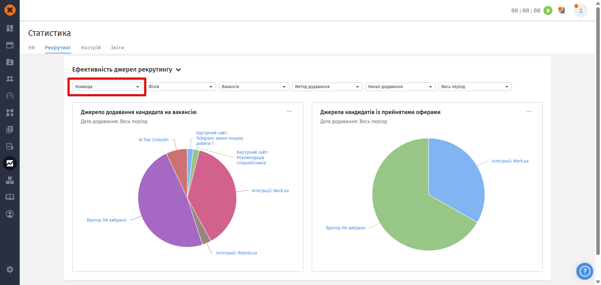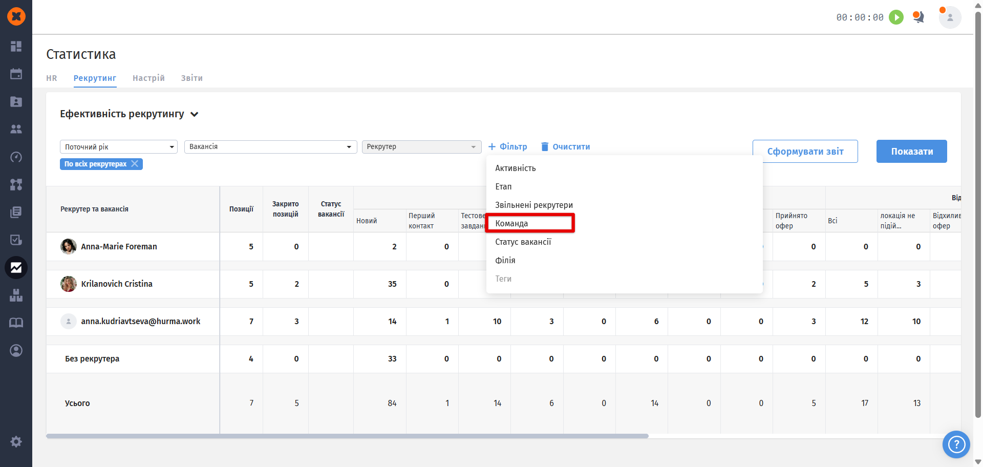 Ми додали можливість переглядати статистику рекрутингу в розрізі команд, тобто впровадили фільтрацію звітів за командами!