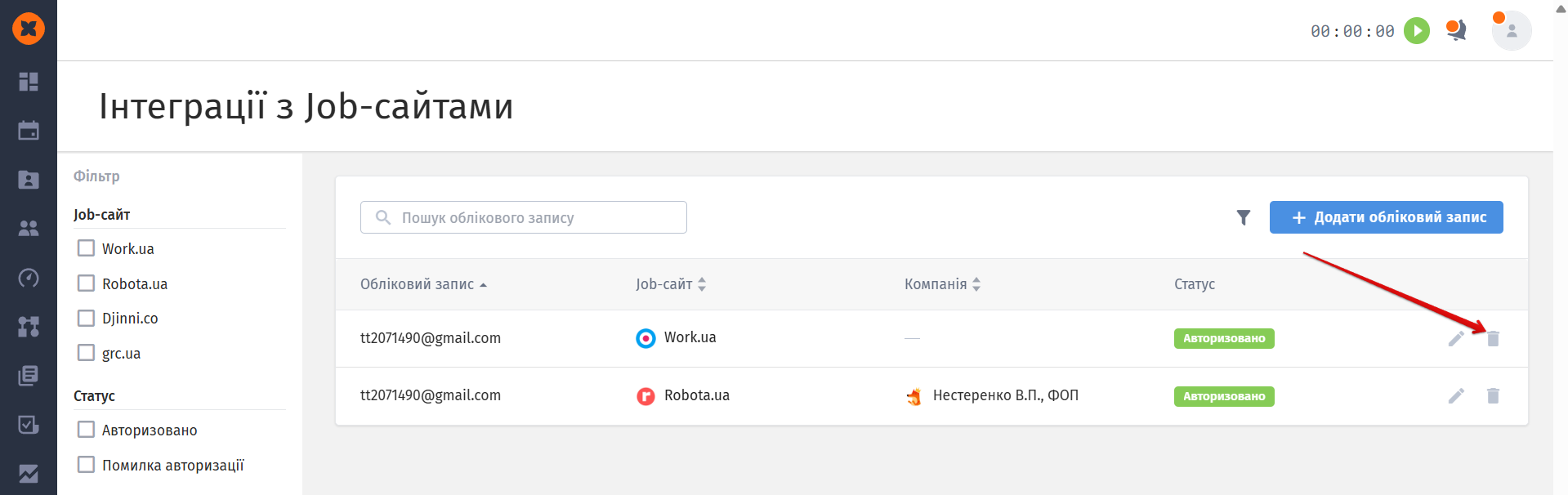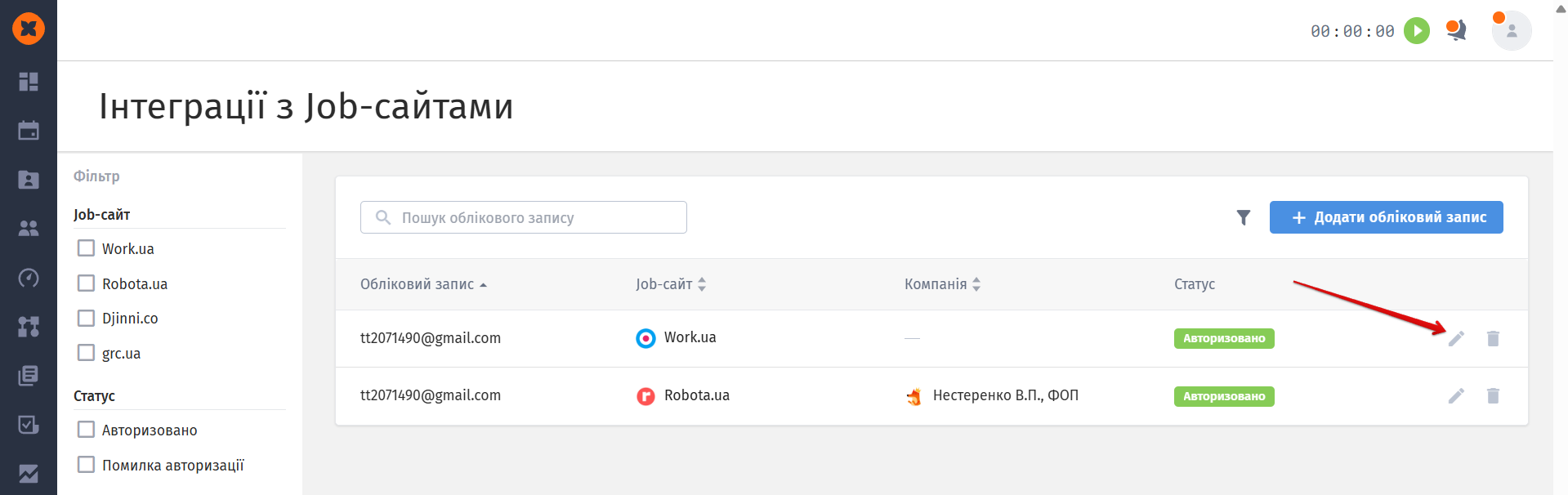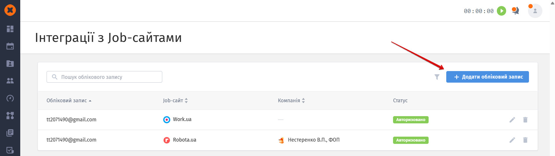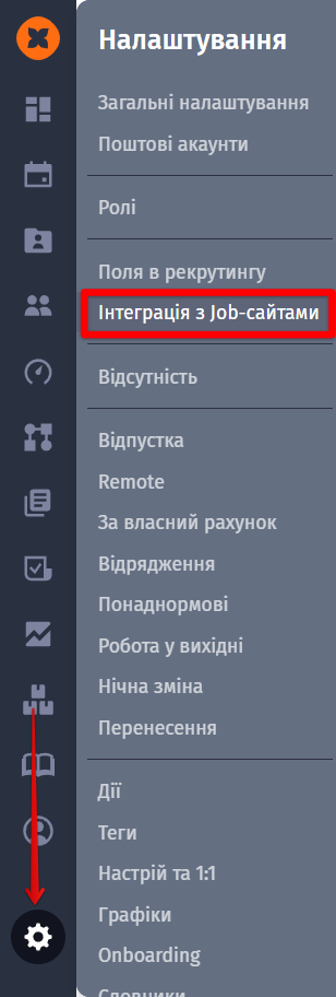 Щоб перейти до налаштувань, скористайтеся наступним шляхом у бічному меню: “Налаштування“ - “Інтеграції з Job-сайтами“.
