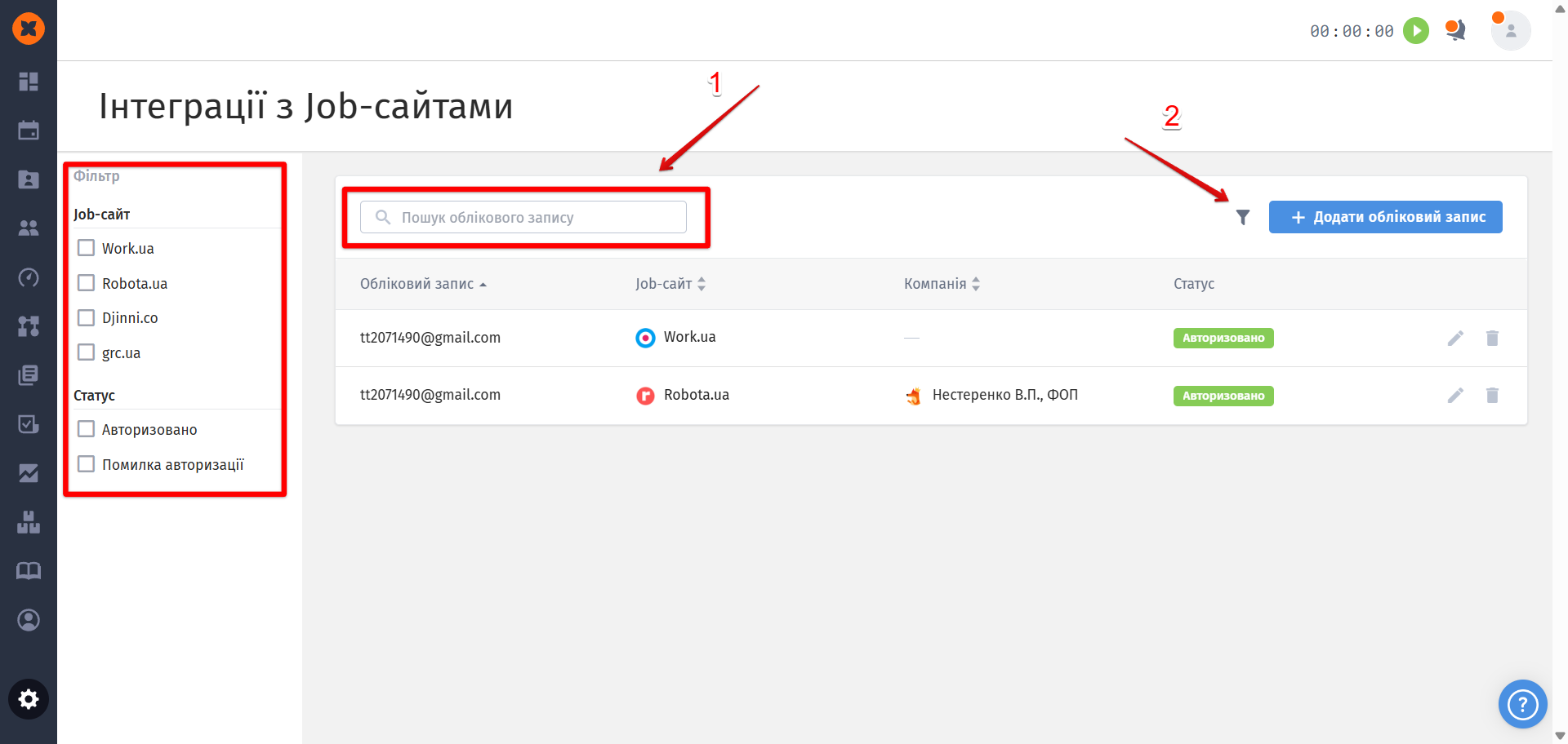 Цей розділ є центром керування вашими зовнішніми ресурсами для рекрутингу. Він дозволяє підключити облікові записи провідних джоб-порталів до системи для подальшої інтеграції з вакансіями, автоматизації публікацій та збору відгуків.
