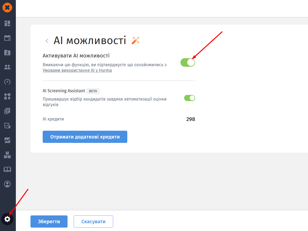 Для того щоб увімкнути інструмент, перейдіть на сторінку “Налаштування” - “AI можливості” та увімкніть перемикач, щоб система активувала функціонал.